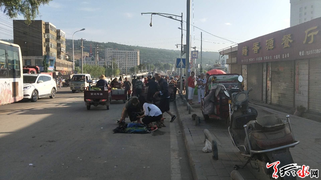 天天天水网讯【通讯员 朱学勇】近期,随着当地瓜果、蔬菜上市旺季的到来,瀛池路流动摊点日益剧增。针对这一问题,秦州区执法局天水郡中队积极部署安排,对瀛池路周边的流动摊贩、占道经营、非机动车乱停乱放等违法行为进行整治,消除各类安全隐患,取得了良好的效果。