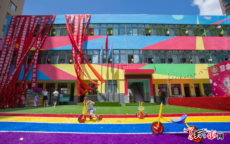 天天天水网讯【记者 张文都】8月12日上午,清水县永清镇毓秀育苗幼儿园举行揭牌仪式,这标志着这所办公面积达1800多平方米的民办幼儿园正式开园。
