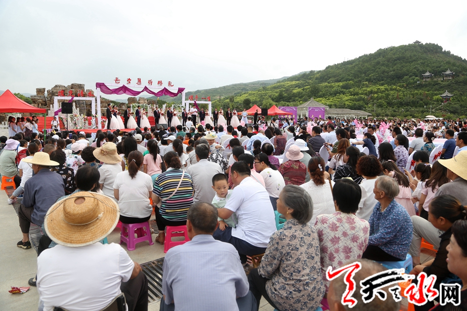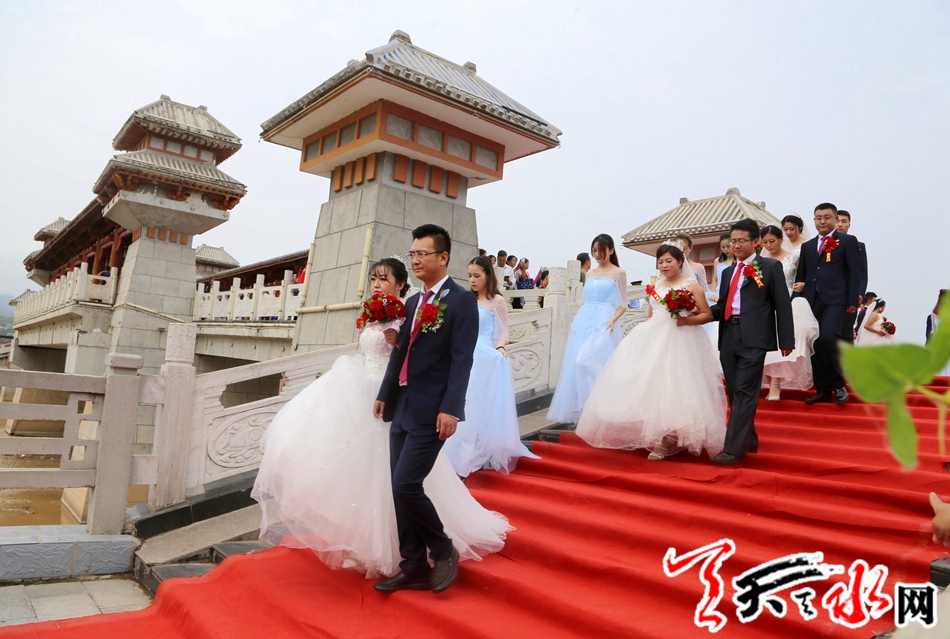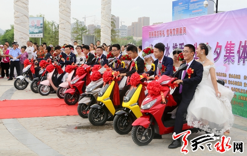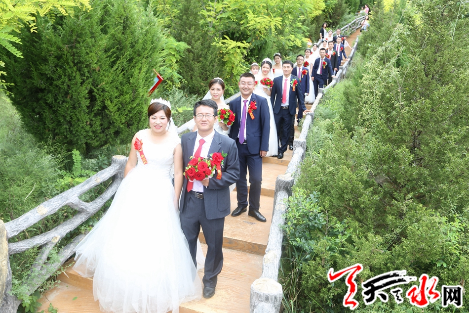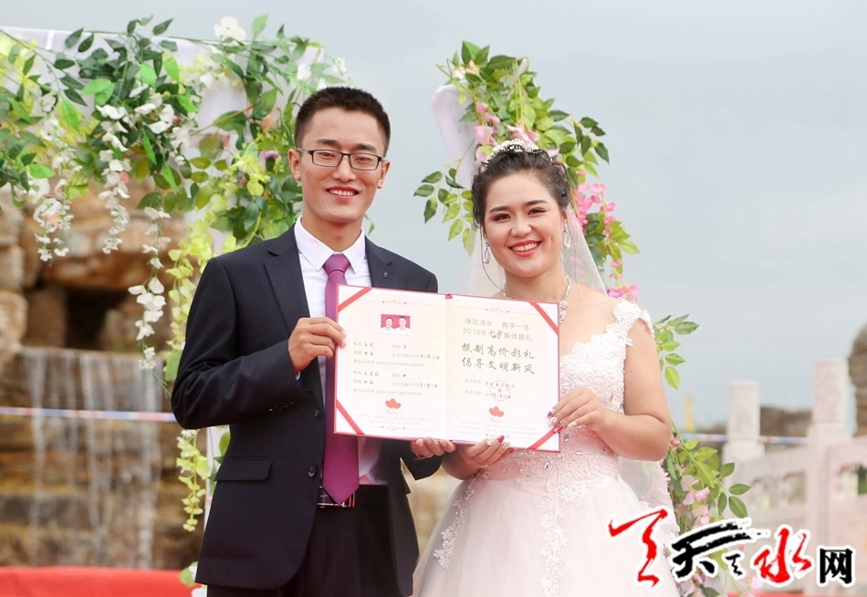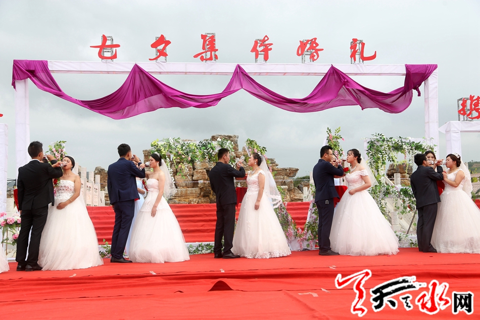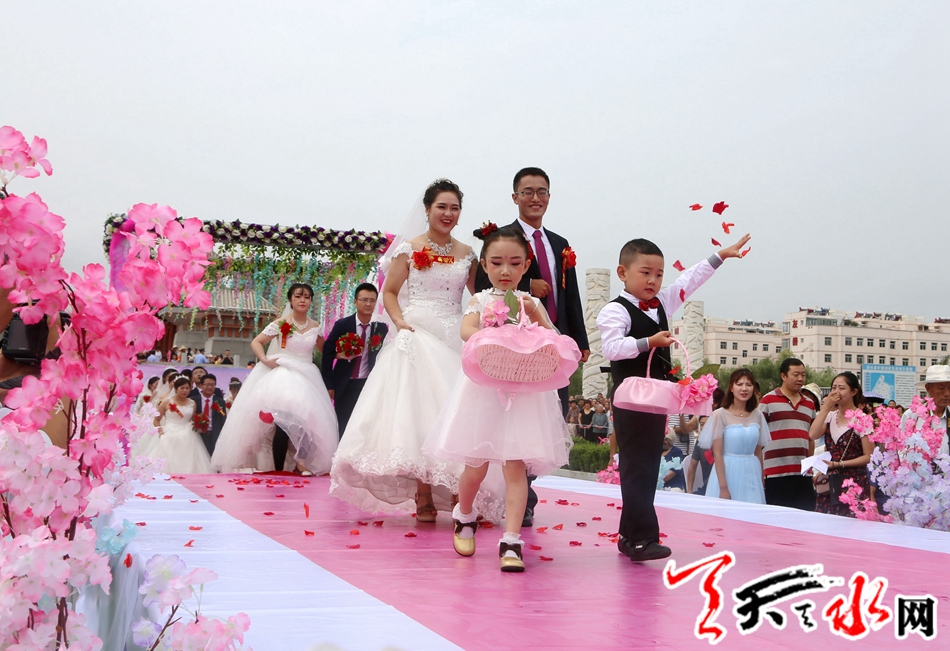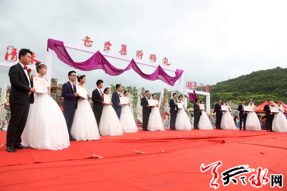 本次集体婚礼有10对新人在县四大组织全体在家领导,各乡镇,各单位负责人,现场亲朋及乡亲、群众千于人的共同见证下,迈入幸福的婚姻殿堂。天水市人大常委会副主任、清水县委书记刘天波作了致辞;清水县人大常委会主任周伟东为新人证婚,县政协主席丁旺喜为新人颁发了集体结婚证书。