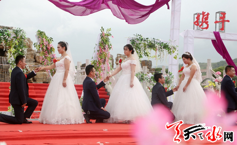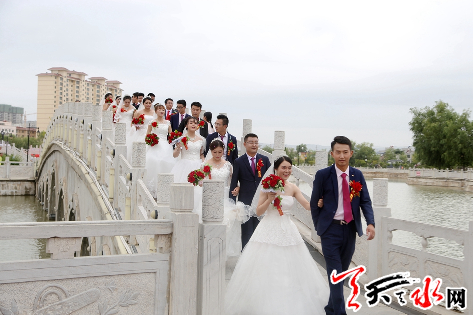 天天天水网讯 为引领社会新风尚,抵制高价彩礼,推动移风易俗,倡导文明新风,树立积极健康的爱情观、婚姻观和消费观,展示新时代青年良好的精神风貌,共享青春嘉年华,8月16日,清水县在轩辕湖公园举办“缘定清水,携手一生”为主题的集体婚礼。