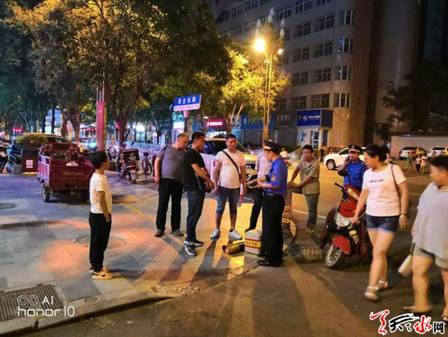 天天天水网讯【通讯员 周建业】 近日,秦州区执法局大城中队为了迎接全国文明城市的创建,加大了路段管理的夜间巡查力度,有效遏制了一些不文明行为。