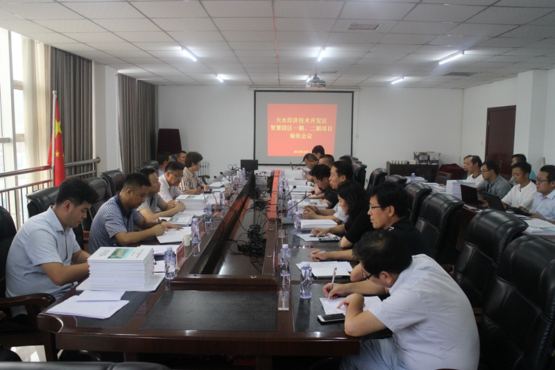 8月1日,开发区管委会召开天水经济技术开发区智慧园区建设项目竣工验收会,开发区党工委副书记蔡全增,管委会副主任巩彩环,办公室、经济发展局、财政局有关负责人,建设单位、施工单位、监理单位相关人员参加会议,邀请国家信息中心信息化和产业发展部主任、中国智慧城市发展研究中心主任单志广,中国开发区协会秘书长关嵘,甘肃省委综合办信息化专家组成员、国家开发大学(甘肃)总工程师沈承福,甘肃省通信服务有限公司设计分公司集团客户事业部总经理兰威,甘肃云天建筑设计有限公司副院长眭国臣五位专家共同组成验收组,对开发区智慧园区建设项目按照一期、二期开展了全面验收。