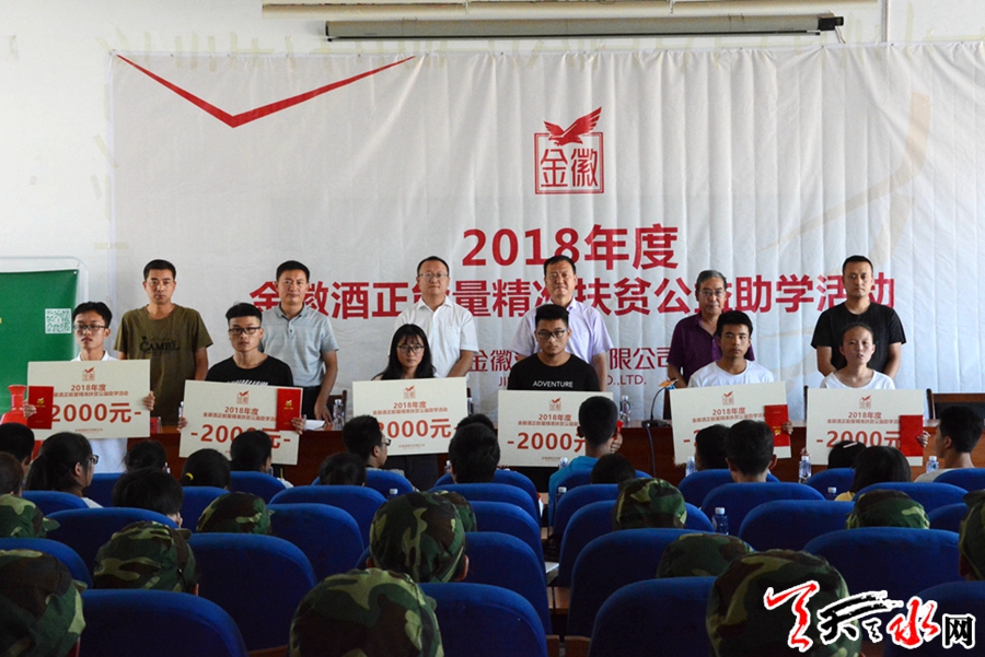 天天天水网讯 (见习记者罗馨)点滴之水,给人力量;微薄之光,给人方向。8月22日,“金徽酒正能量精准扶贫公益助学活动”秦安县捐助仪式在秦安县一中举行。此次捐助仪式向刚考入大学的33名贫困学子发放共6.6万元爱心助学金。