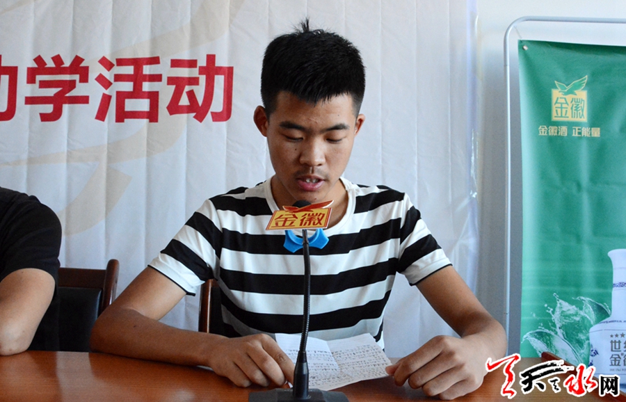 秦安县教育体育局副局长王少平,金徽酒陇南销售有限公司天水大区经理杨坤等领导嘉宾和新考入大学的贫困家庭学生及参加军训的高一新生代表100余人参加了仪式。秦安县一中副校长徐孝忠主持捐助仪式。秦安县招生办公室主任吕东林宣读了受助学生名单。