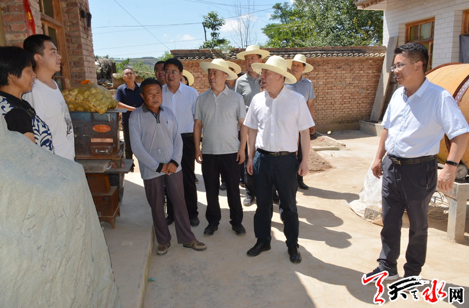 天天天水网讯【全媒体记者王晓馨】8月23日,市委书记王锐带领市委组织部、市委农工部、市扶贫办负责同志来到秦安县联系点,就脱贫攻坚及软弱涣散村党组织整顿等工作进行调研。他强调,要持续深入学习贯彻习近平扶贫思想,牢牢把握新时代党的建设总要求,严格对照省上新调整的《精准脱贫验收标准及认定程序》,抓党建促脱贫攻坚,抓产业促稳定增收,抓作风促任务落实,确保按期实现脱贫摘帽。