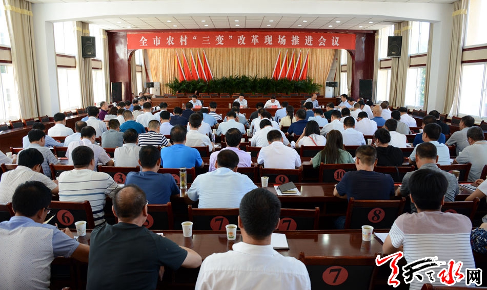 天天天水网讯【全媒体记者吴丽娜】8月23日,全市农村“三变”改革现场推进会在清水县召开。市委副书记、市长、市农村“三变”改革工作领导小组组长王军在会上强调,要充分认识全面推开“三变”改革的重大意义,及时总结推广经验,盯紧抓牢改革重点,确保改革出经验、出亮点、出成效,努力为发展农村经济、推进脱贫攻坚、决胜全面小康作出更大贡献。