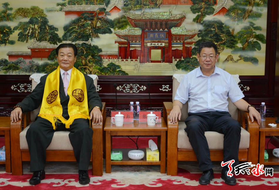 天天天水网讯(记者 李欣桐)8月25日至26日,台湾工党常务副主席、国际同心会世界总会长、国际学士总裁苏炳郎一行来我市就伏羲文化、旅游等方面内容进行考察。市委常委、宣传部长张建杰,市政府党组成员逯克宗陪同考察。
