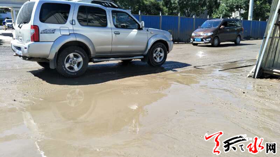 (在秦州区羲皇大道供电局附近,道路坑洼泥泞,路面积水严重)