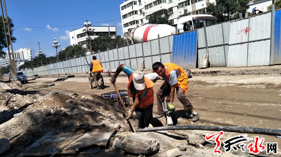 (在秦州区羲皇大道石马坪附近,施工人员正在紧张施工)