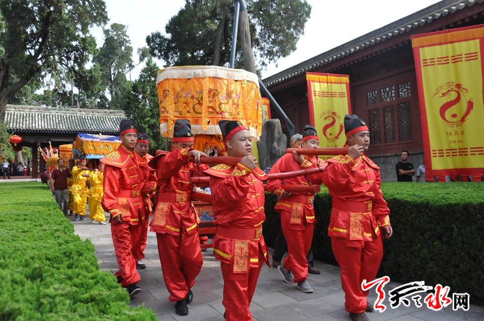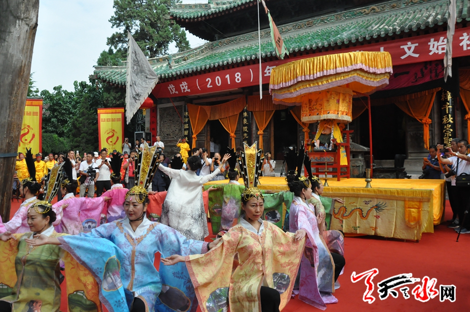 为更好地保护和传承国家级非物质文化遗产保护项目----“太昊伏羲祭典”礼仪,缅怀始祖精神,弘扬伏羲文化,打造羲皇故里世界华人寻根祭祖圣地,戊戌年七月十八日至二十日(公历2018年8月28日至8月30日,星期二至星期四),在天水伏羲庙举行“戊戌(2018)年秋祭中华人文始祖太昊伏羲氏典礼”。
