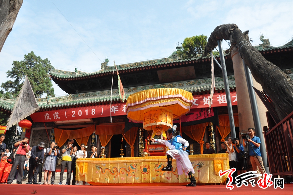 天天天水网讯(记者 刘晓亚)2018年8月28日上午,天水伏羲庙“戊戌(2018)年秋祭中华人文始祖太昊伏羲氏典礼”盛大启幕。整个典礼将持续3天,当天完成了典礼的迎神、出榜文仪式。