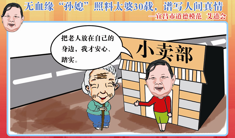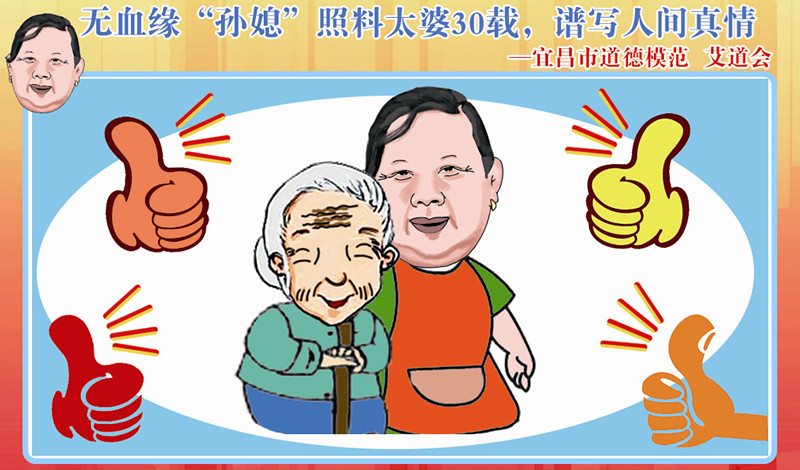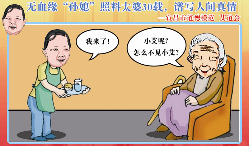 这个故事无关血缘,却关乎人间最温暖的情感——亲情。在湖北省宜昌市猇亭区古老背街办,现已过世的99岁老人董发秀与并无血缘关系的孙媳妇艾道会情同母女,她们之间有一根无形的亲情纽带相连。艾道会30年如一日,悉心照料太婆婆董发秀,不离不弃。她用质朴的情感和感恩的心,谱写了一曲人间大爱的亲情赞歌。30年来,艾道会如何呵护隔代亲情?一组漫画告诉你!