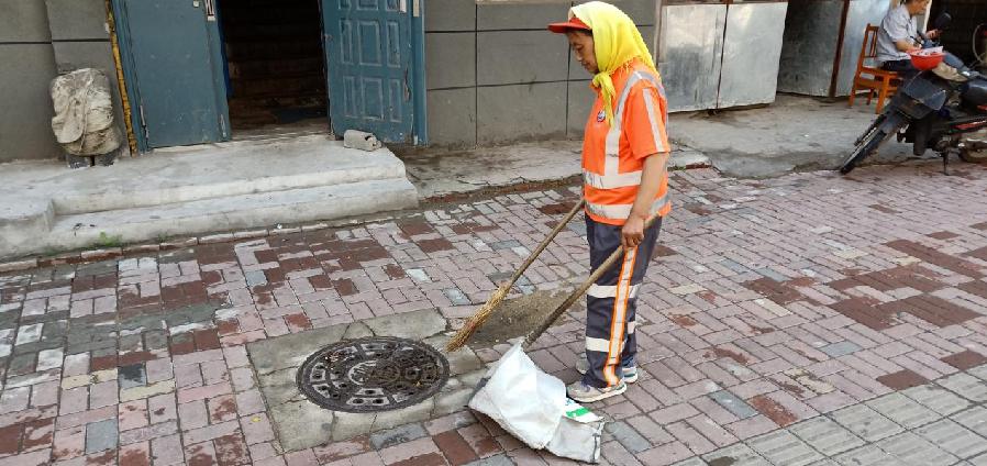 张殿芳正在打扫街道 图片来源:吉林文明网