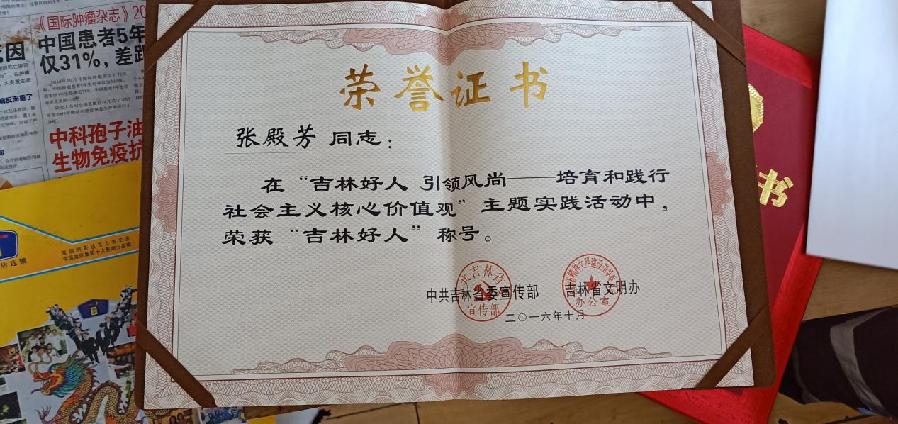 张殿芳曾获得的荣誉 图片来源:吉林文明网