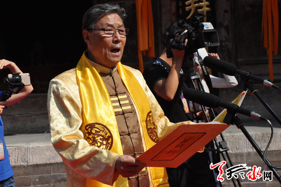 (天水市民间祭祀伏羲协会顾问杜明富恭读祭文)