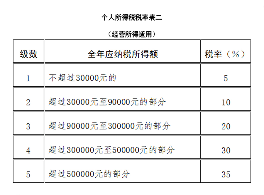 (二)经营所得,适用百分之五至百分之三十五的超额累进税率(税率表附后);