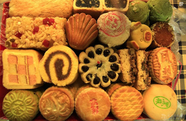 月饼皮有油皮、油酥皮、澄浆皮和京广皮四大类;馅芯又分为炼馅、炒馅、擦馅三个类别,馅芯内含果料较多,切开后可看到桃仁、麻仁、桂花、青红丝及各种果料,自来红月饼还含有冰糖,吃起来松酥利口、绵软细腻。质量低劣的月饼不仅皮馅坚韧没有酥松感,往往还会有一种苦涩味。