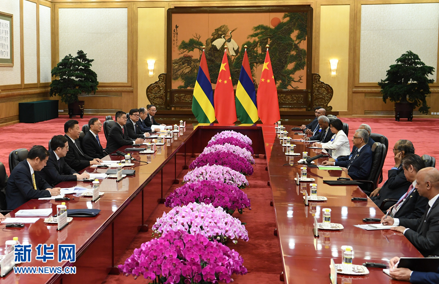 习近平指出,一个多月前,我成功访问毛里求斯,深切感受到中毛友好深入人心,前景广阔。双方要充分发挥高层交往的政治引领作用,加强沟通交流,继续在涉及彼此核心利益和重大关切问题上相互理解、相互支持,进一步提升政治互信,积极开展互利合作。中方将继续支持毛里求斯在国际和地区事务中发挥积极作用,支持小岛屿国家落实好联合国2030年可持续发展议程。