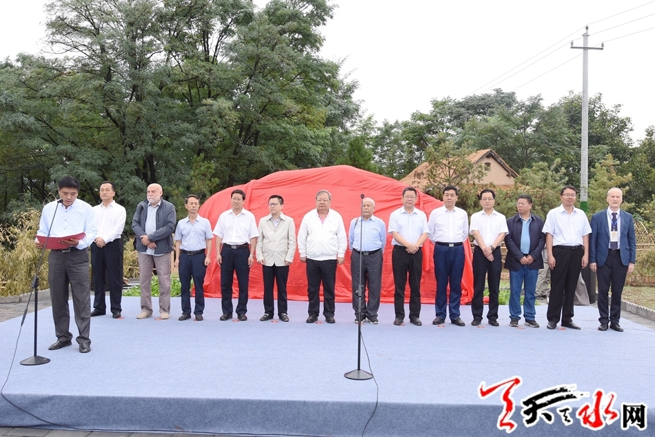 著名诗人、中国作协书记处书记、副主席吉狄马加,天水市委常委、宣传部长张建杰共同为石碑揭幕。