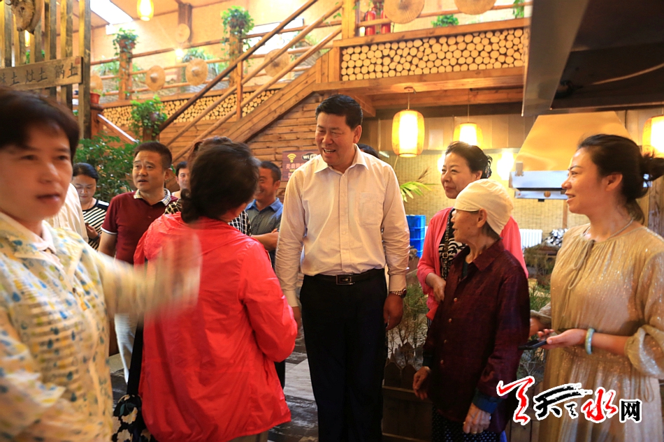 麦积区甘泉镇甘江村与农家乐游客交谈