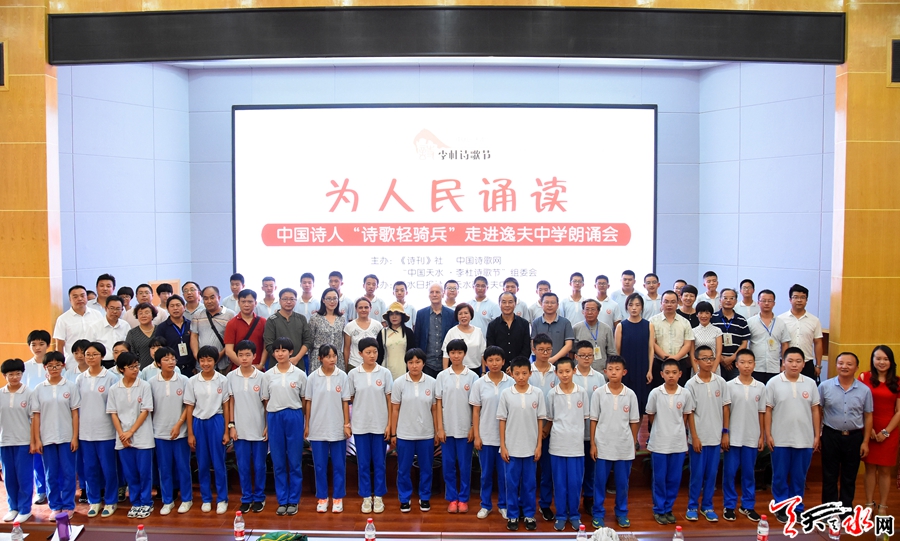 为人民诵读——中国诗人“轻骑兵”走进逸夫中学朗诵会是第三届“中国天水·李杜诗歌节”的重要活动之一。活动由《诗刊》社、中国诗歌网、“中国天水·李杜诗歌节”组委会主办,天水日报社、天水市逸夫实验中学承办。目的在于培养学生的爱国主义精神,普及现代诗常识,激发学生热爱诗歌、传承中华传统文化的热情,让诗歌带给学生们更加广阔的精神领悟,以及纯粹优雅的心智,让诗意在校园中流淌。