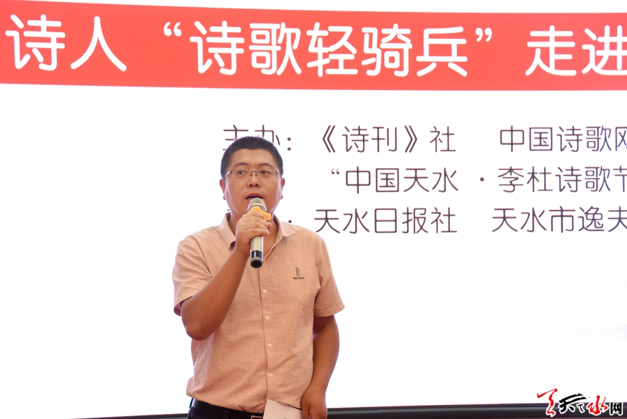 天天天水网讯 【全媒体记者王晓馨 图:李旺旺】9月3日下午,天水市逸夫实验中学阶梯教室内掌声如潮,诗情荡漾,为人民诵读——中国诗人“轻骑兵”走进逸夫中学朗诵会正在这里举行。