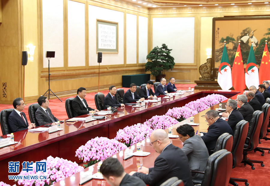 乌叶海亚表示,昨天,我向布特弗利卡总统报告了北京峰会的盛况。他让我转达对习近平主席的热烈祝贺以及对中国支持非洲的衷心感谢。乌叶海亚表示,阿中关系历史悠久。阿尔及利亚在争取民族独立和实现国家发展中得到中方宝贵支持,双方在国际事务中一直紧密配合。阿方赞赏并支持北京峰会提出的中非合作新举措,愿以此次双方签署“一带一路”合作协议为契机,深化双方务实合作。