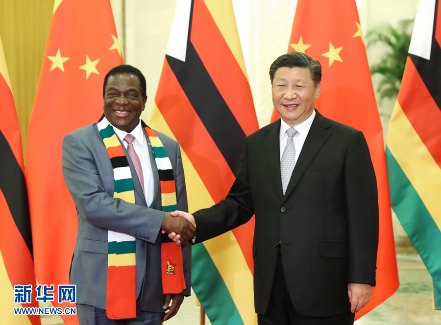 9月5日,国家主席习近平在北京人民大会堂会见津巴布韦总统姆南加古瓦。新华社记者 黄敬文 摄