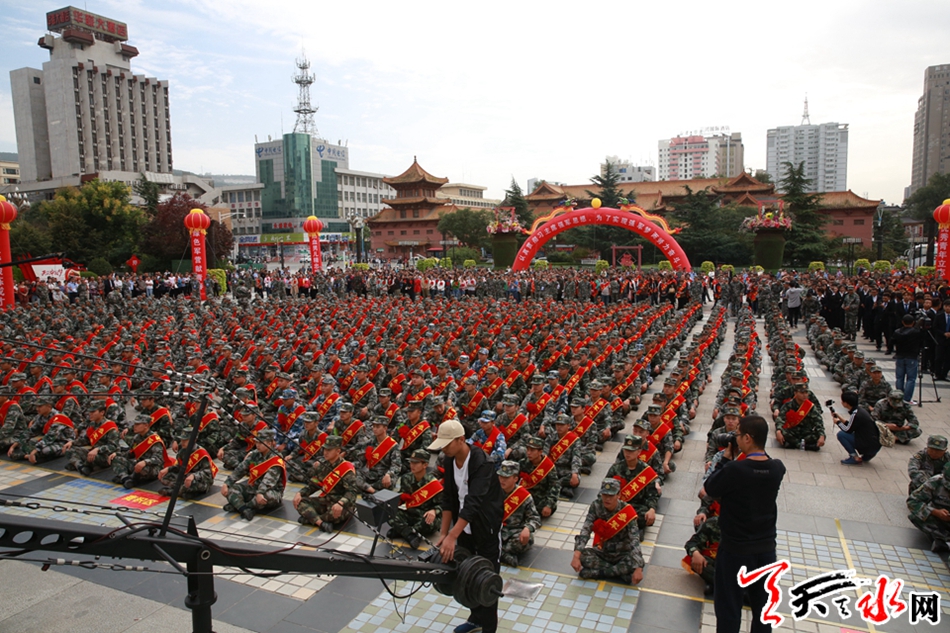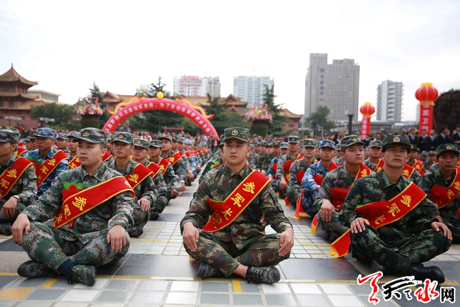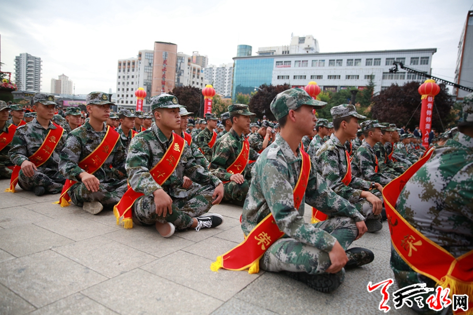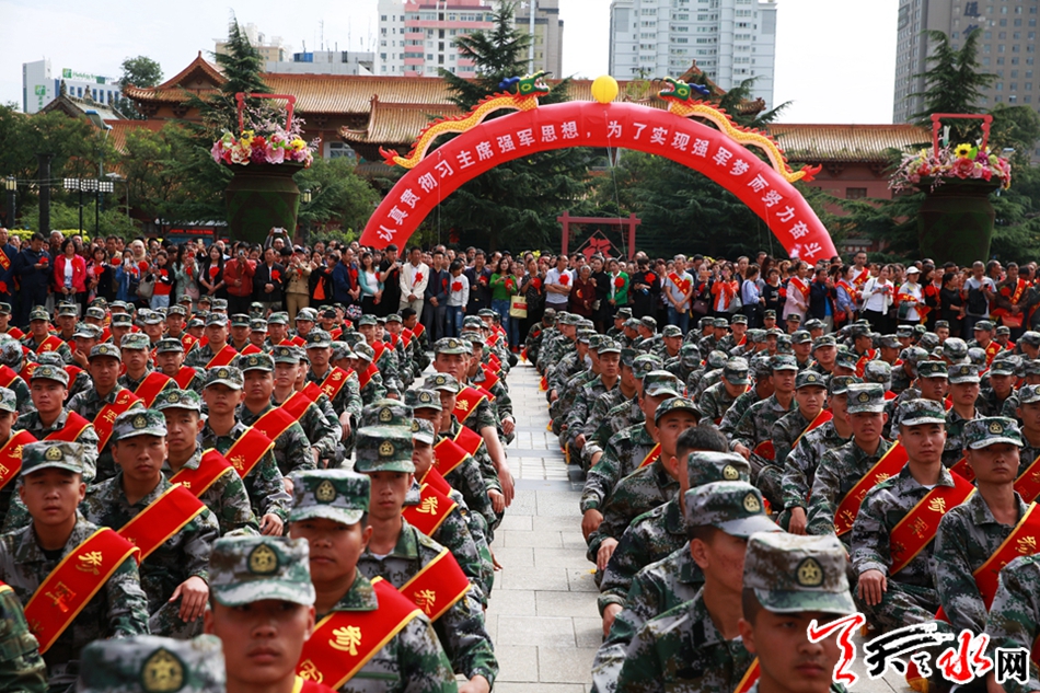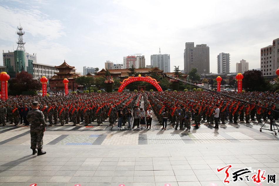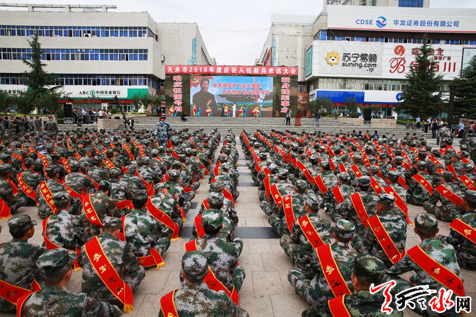 天天天水网讯 (记者罗馨 杨旭 文涛)9月7日上午,天水市龙城广场上军歌嘹亮、军乐齐鸣, 2018年度天水市新兵入伍欢送大会隆重举行,全市各级党军政领导、驻军部队、各界群众和新兵家属为即将步入绿色军营的1200余新兵送行。