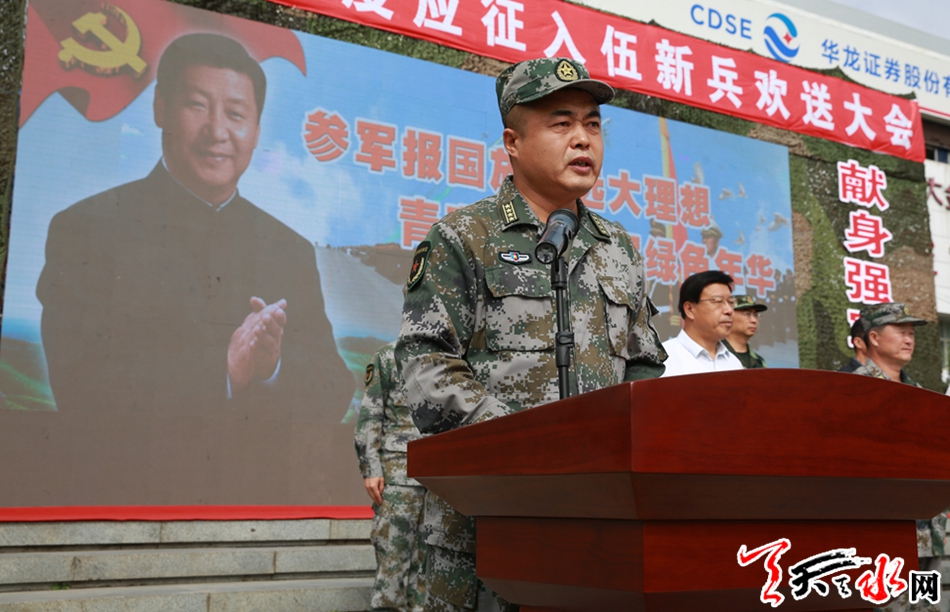 刘甫清在讲话中代表天水军分区党委,向应征入伍的新战士们表示热烈祝贺。他说,军队是维护国家主权、保卫国家安全的钢铁长城,在部队接受考验与锻炼,将会收获一生的荣光与财富。希望大家深明责任义务,传承“一不怕苦、二不怕死,战胜一切敌人、战胜一切困难”的血性虎气,投身军营大熔炉、大学校,养成坚毅的军人品格,牢记庄严承诺,在习近平新时代中国特色社会主义思想和强军思想的哺育下,扎根军营、无私奉献,茁壮成长,坚定走好军旅人生每一步。