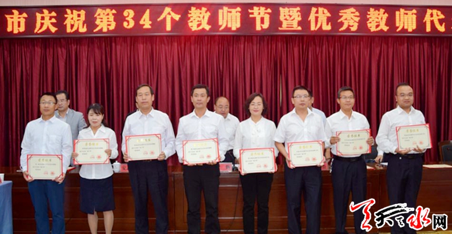 天天天水网讯【记者马哲】9月8日,我市召开庆祝第34个教师节暨优秀教师代表座谈会,表彰优秀教师,交流先进经验,并向所有默默无闻耕耘在教育战线的广大教师和教育工作者致以节日的问候。