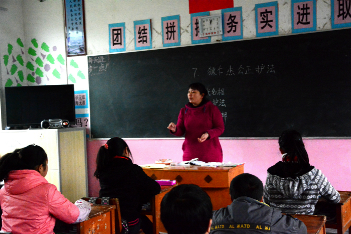 杨旭丽正在给学生们上课。图片来源:乐江乡人民政府