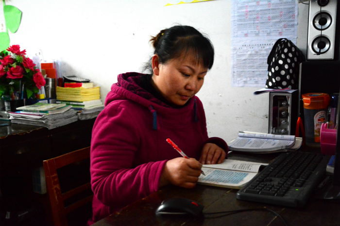 杨旭丽正在认真备课。图片来源:乐江乡人民政府