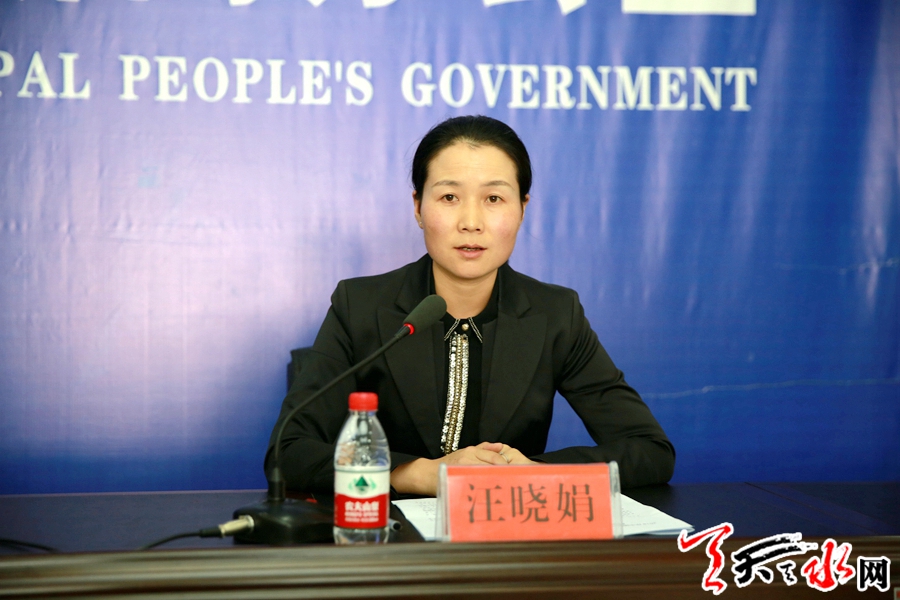 天水市体育局副局长李爱平、秦州区人民政府副区长汪晓娟出席了本次新闻发布会,市政府新闻办主任胡江主持发布会。