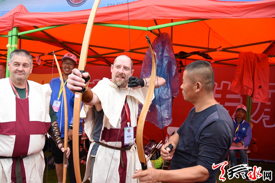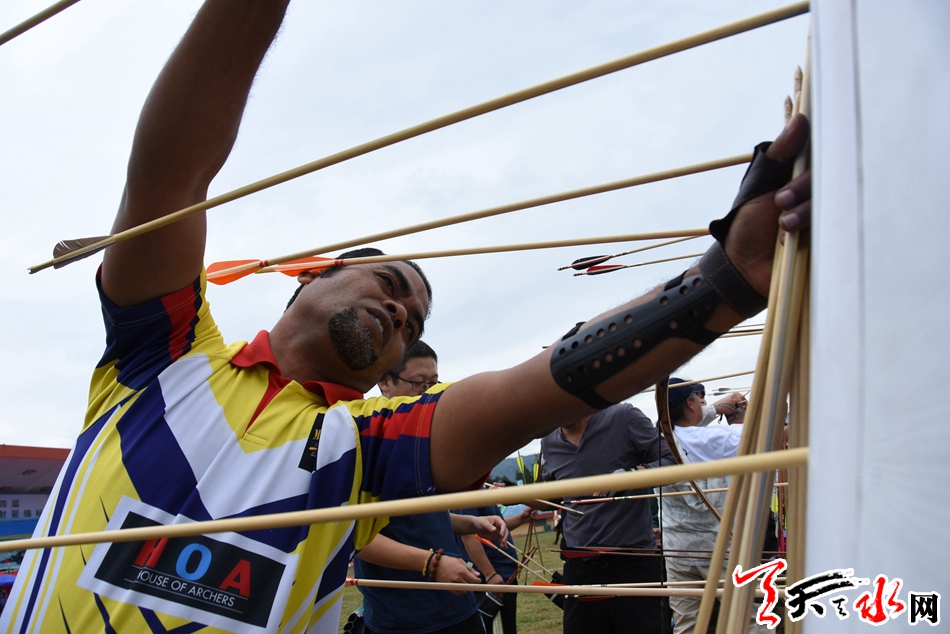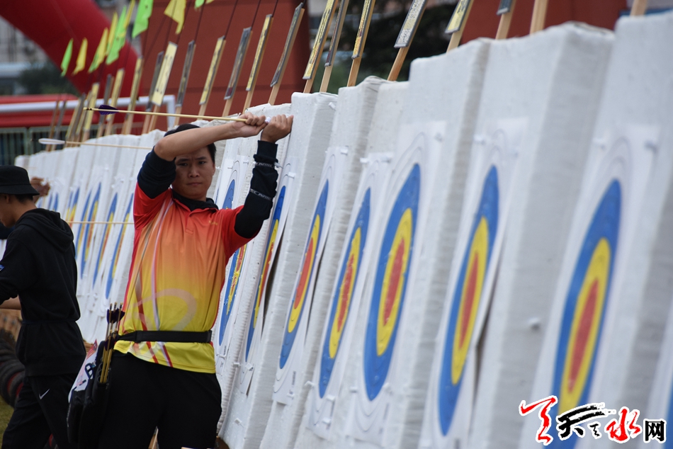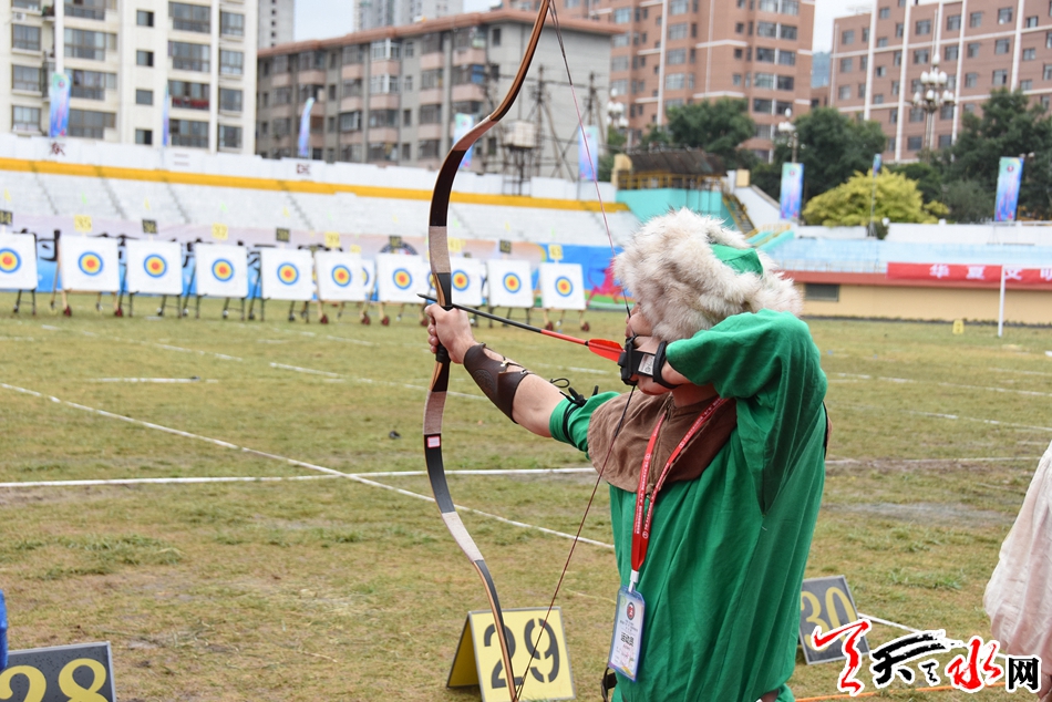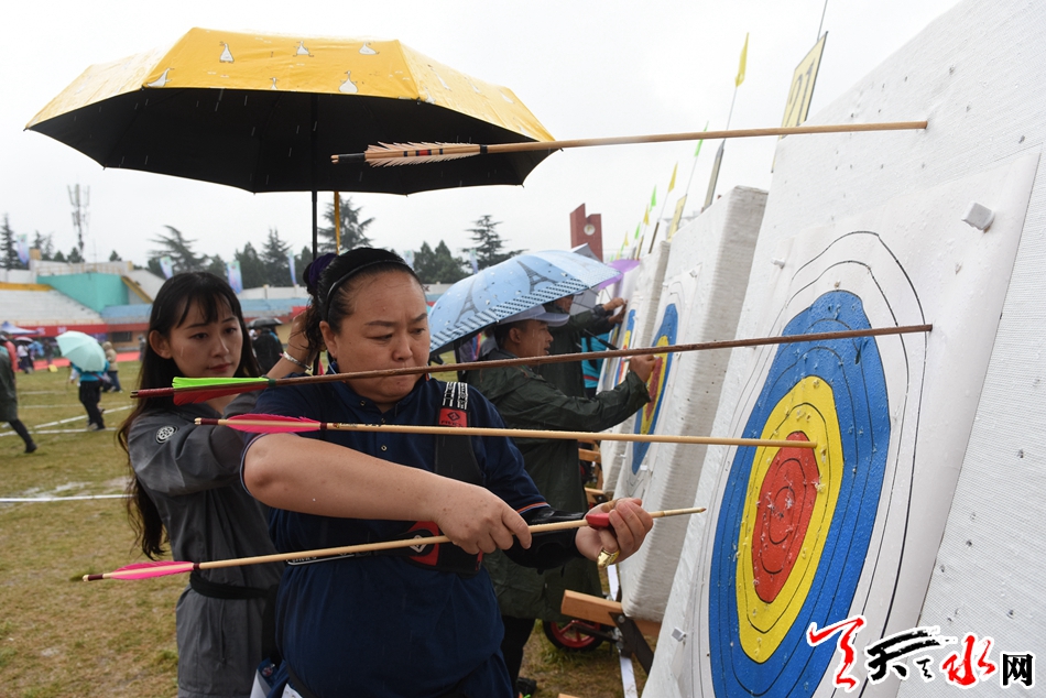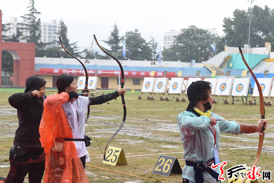 天天天水网讯【记者杨旭】9月13日,中国·天水秦州第四届“李广杯”国际传统射箭锦标赛进入激烈而又紧张的第二个比赛日。天空中虽然飘着微凉的秋雨,但丝毫没有降低运动员们的热情,他们一个个神情专注,箭指靶心,在雨中彰显着运动的拼搏精神与魅力。