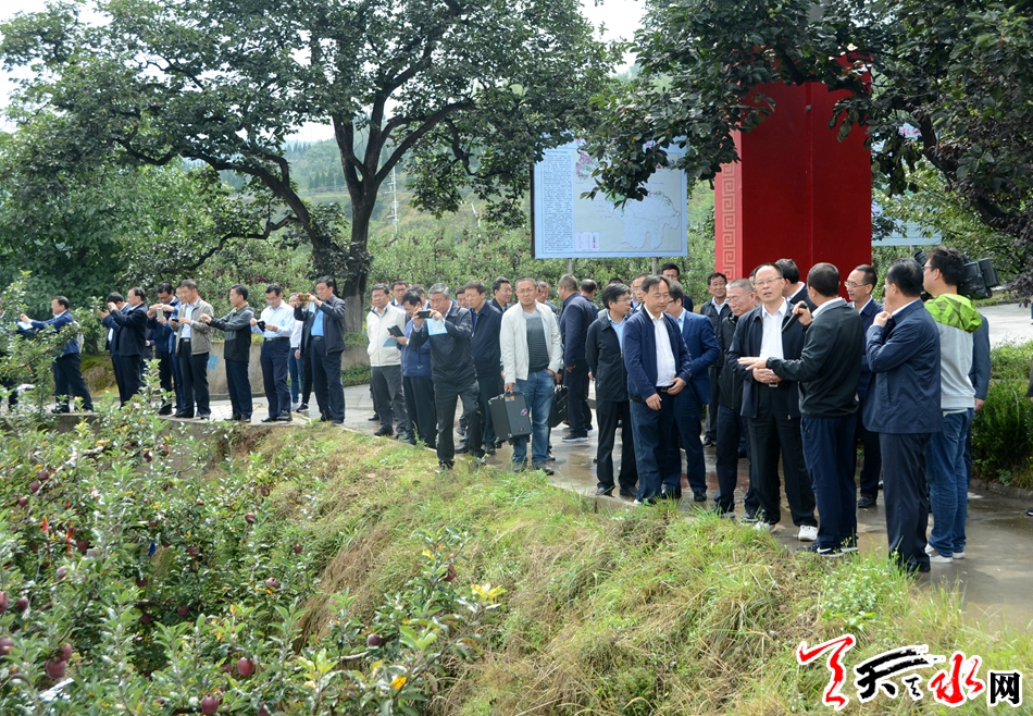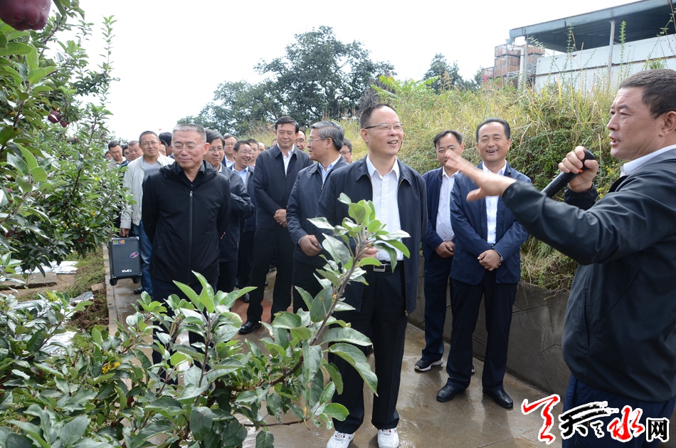 ▲在麦积区南山花牛苹果基地观摩