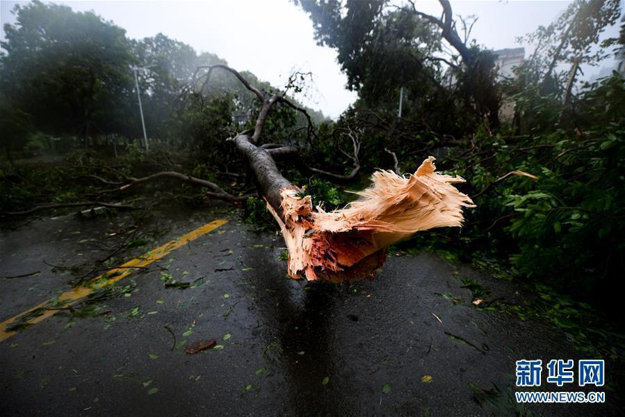 9月16日,在深圳市福田区,“山竹”带来的强风造成树木倒伏。新华社记者 毛思倩 摄