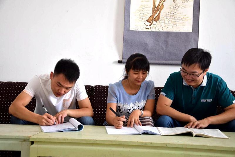 对于课上理解知识不透彻的学生,董思记(右一)经常利用课余时间为他们讲解学习。图片来源:蒙城县文明办