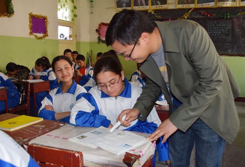 董思记支教的学校是和田一中,他带三个班的物理课。由于学生汉语水平不高,接受能力有限。课堂上,他就用生动的语言、精致的实验、生动的图片和优美的视频吸引每一位同学的注意,培养他们对物理学科的兴趣,让他们体会到学习的快乐。课余,他经常和同学们掰手腕、做游戏,为他们辅导功课、补缺补差,向他们学维吾尔语,渐渐地,同学们纷纷“亲其师,信其道”,喜欢上了他的课程。他听到同学们说的最多的一句话就是:“董老师的课让我们领略了物理的美妙。”
