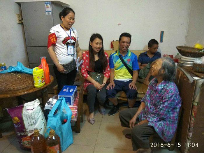 独居的高龄老人陈奶奶一直是姚美华的牵挂。陈奶奶上了年纪后行动不便,子女都在外地,一个人住在年代久远的老房子里,姚美华知道后就经常和社工一起去探望她。陈奶奶说,姚美华隔一段时间就会到家里坐坐,和她聊聊家常,陪她在附近走走,活络筋骨,逢年过节还带来大包小包的礼物。“端午节她给我送的东西都还在那里,一个人吃不完。难得能有年轻人这么热心。”陈奶奶笑得合不拢嘴。