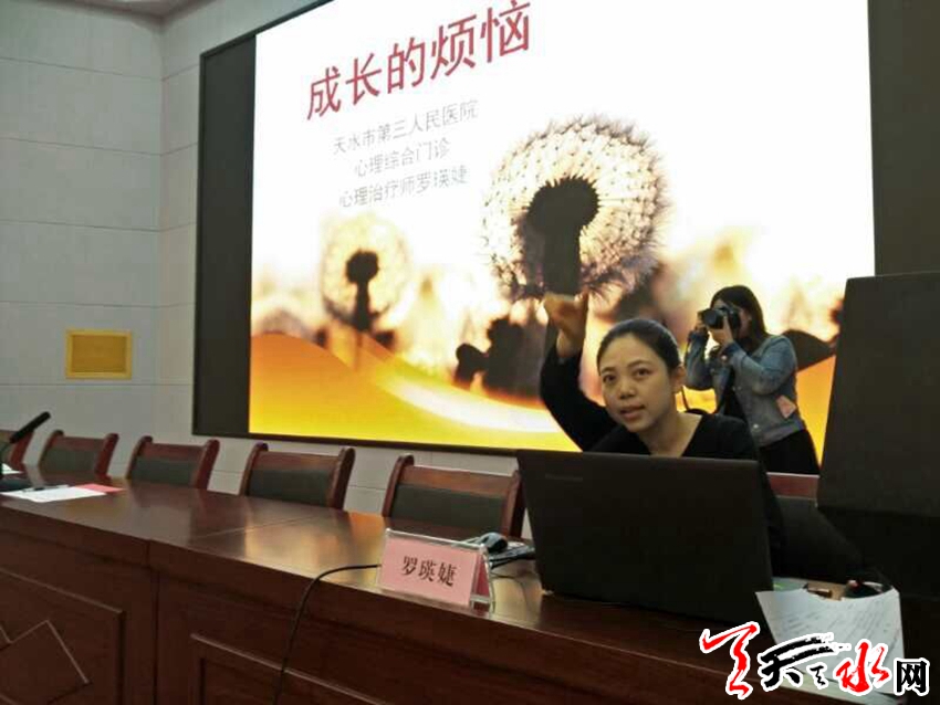 当天,国家二级心理咨询师、市第三人民医院心理综合门诊部心理治疗师罗瑛婕为市逸夫实验中学学生作了题为《成长的烦恼》专题讲座。9月20日至21日,市第三人民医院心理综合门诊部心理治疗师王泓力、市第三人民医院心理综合门诊部副主任医师张子明将分别为甘肃机电职业技术学院、市建二小学学生作题为《大学生常见心理问题及调适》《快乐童年 健康成长》的专题讲座。