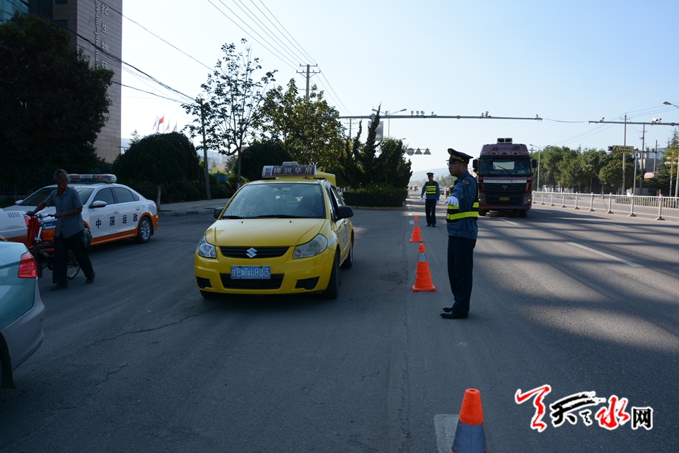 为确保中秋节、国庆节假期出租汽车市场安全、有序。 9月19日下午,天水市道路运输管理局麦积分局稽查队执法人员深入一线对出租车等营运车辆进行专项整顿,力保“中秋”“国庆”双节期间出租汽车市场安全畅通。