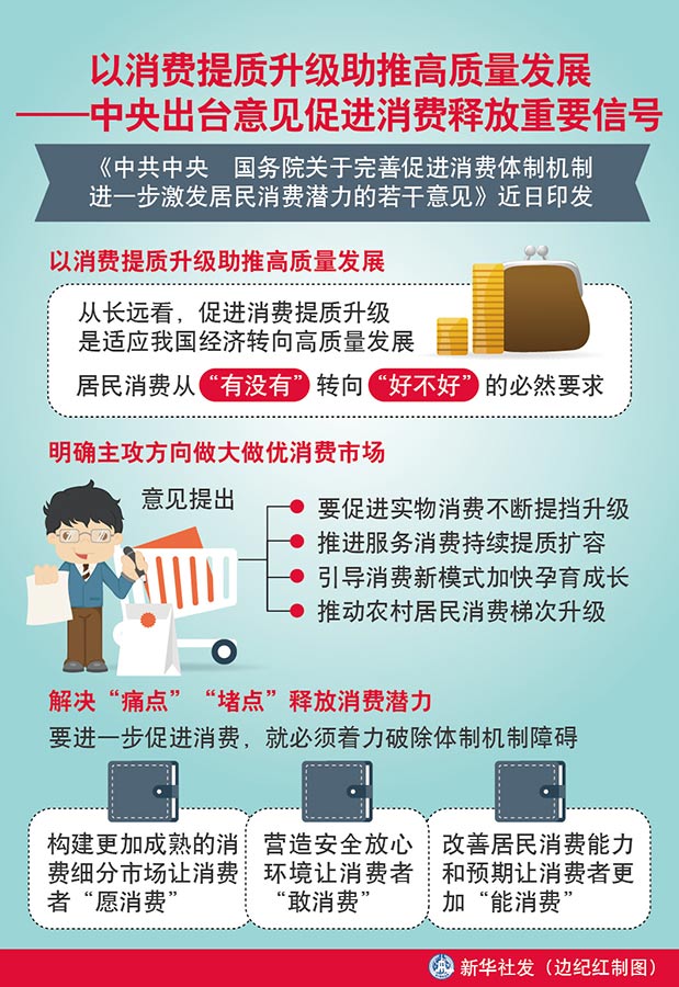 新华社北京9月21日电 题:以消费提质升级助推高质量发展——中央出台意见促进消费释放重要信号