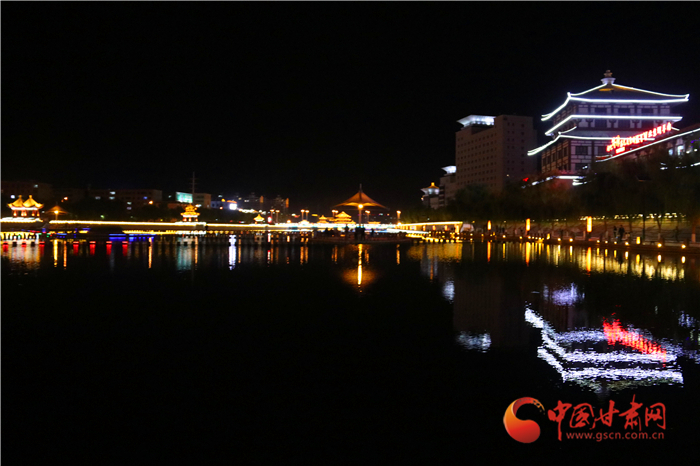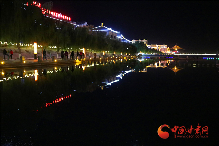 敦煌市党河风情线。璀璨夜色、一城繁华。褪去白日的光芒,夜晚的党河多了一份柔和与摇曳,也扮靓了敦煌的夜空。随着三届丝绸之路(敦煌)国际文化博览会即将开启,这份夜色也邀请更多宾客走进敦煌之夜。