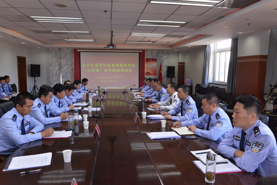 天天天水网讯(通讯员 刘冀远)为深入推进全市公安交警部门“放管服”改革措施落地见效,全面贯彻全省公安交管“放管服”改革视频调度会精神,9月21日天水市公安局交警支队召开深化“放管服”改革现场推进会。市公安局交警支队领导,车管所、科通科、安监大队、考试中心负责人,各县、分局分管车驾管工作领导、车管所所长、业务骨干共计30余人参加会议。