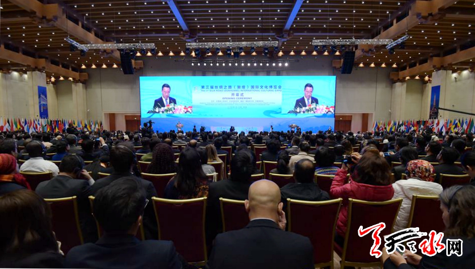 天天天水网敦煌电【记者马凯】9月27日上午,第三届丝绸之路(敦煌)国际文化博览会在敦煌国际会展中心盛大开幕。本届文博会以“展现丝路风采,促进人文交流,让世界更加和谐美好”为主题,邀请乌克兰担任主宾国,共有近100个国家和地区及国际组织的代表,1000多名国内外嘉宾出席会议。