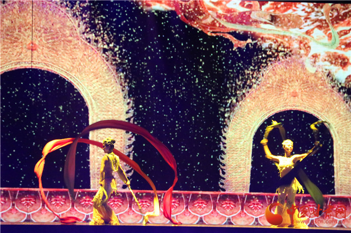 中国甘肃网9月27日讯(本网记者 宋芳科 文/图) 当热情的乌克兰歌舞与敦煌交响曲融合,丝路风情更显多姿多彩。9月27日晚,第三届丝绸之路(敦煌)国际文化博览会主宾国乌克兰携手甘肃艺术家在敦煌大剧院精彩上演“相约敦煌·2018”文艺晚会。为观众呈现了一台多元文化盛宴。