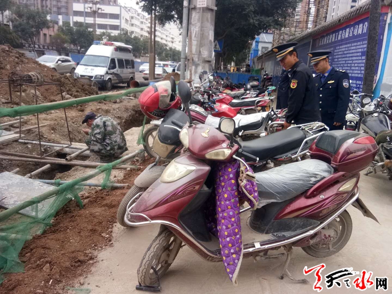 整治中,中队出动10名执法队员对沿街占道摊点、乱停车辆以及乱张贴小广告进行集中清理,重点对交通容易拥堵的燕林南北路进行规范治理,将两侧占道摊点都规范至人行道以上经营,及时疏导交通,以便行人和车辆顺利通行。当天,玉泉中队执法队员早上七点到岗,对烈士陵园周边加强巡查力度,对流动摊点进行及时清理,确保公祭活动期间市容环境卫生秩序良好。