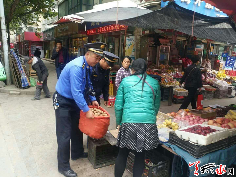 一、强化流动摊贩的专项整治工作。每逢节假日前夕,不规范经营的现象也随之增多。随意占道设摊经营,给过往车辆行人以及附近居民的出行造成了极大的困扰。秦州区执法局玉泉中队在国庆节前对辖区内的大众南路、藉河南路、师院路等主要干道及人流密集的市场周边进行集中整治,在力求方便人们买卖的同时,保持市场周边的和谐、有序。