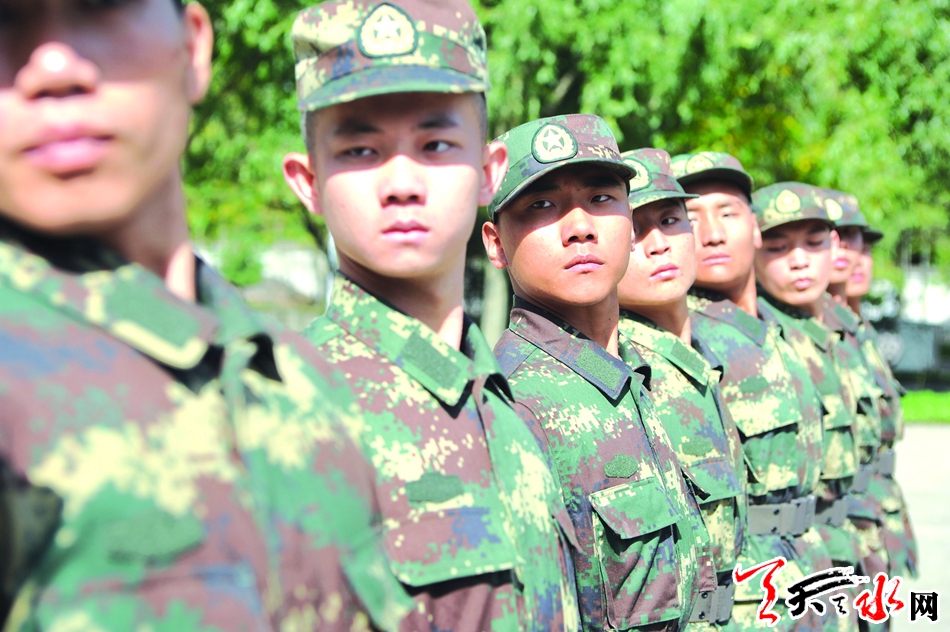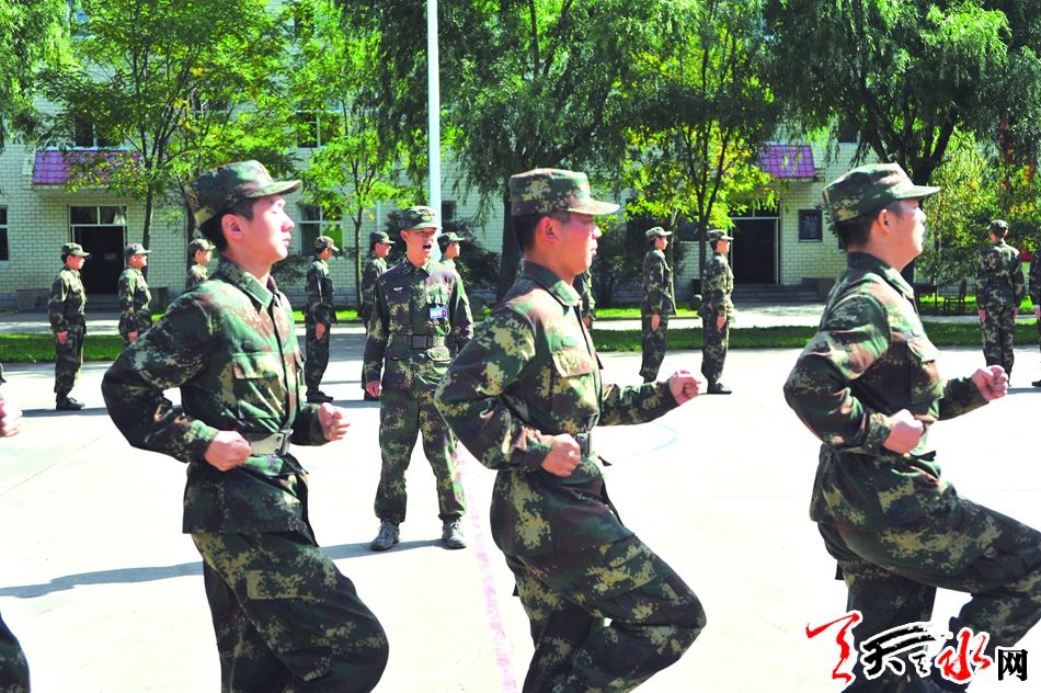 稍息、立正、跨立、敬礼、齐步走、跑步走、正步走、脱戴帽,在教官的指导训练中,新兵们个个热情高涨,一丝不苟地反复进行队列、军姿练习。